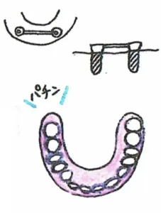 この方法は部分入れ歯でも使えるので入れ歯がカパカパ動く、硬いものが咬めず痛いという方に効果があります。
