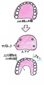 下の入れ歯の場合もマグネットは使えますが入れ歯を鉄棒にしがみつかせるタイプもあります。