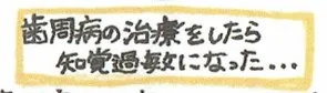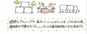 歯周病の治療により、歯肉が引きしまると根が露出してしみることがあります。この場合、歯周病の治療と同時に知覚過敏の治療をします。