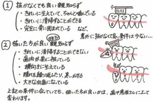 親知らずの中には、本当に抜いた方が良いものも存在します。その基準は手前の歯に影響があるかどうかです。親知らずによって、骨の吸収が起こったり虫歯になる場合です。